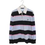 プラダ PRADA サイズ:50 UMB990 ボーダーシルクポロ長袖カットソー(ピンク調)【402062】【SB01】【メンズ】【新古品】bb78#rinkan*N