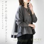 オトナの上品モードフェミニン バックシアーデザイントップス カットソー 長袖 薄手 ロンT チャコール グレー OTONA 40代 50代 60代