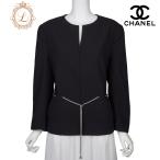 CHANEL シャネル ウエストチェーン ノーカラー ジャケット 42 ブラック トップス 長袖 カットソー アウター ブラン