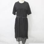 モンクレール MONCLER ワンピース 半袖 ロング カットソー レース プリーツ ベルト ロゴ 黒 ブラック XS レディース