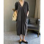 ワンピース Vネック サイドギャザー 半袖 カットソー シンプル ワンピース