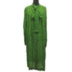 美品 DRIES VAN NOTEN ドリスヴァンノッテン タイネック シアー ワンピース ドレス 総柄 スカーフ カットソー ロング 36 緑 グリーン レディース 古着 中古