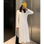 ワンピース ロングワンピース ロング丈 リブ カットソー 長袖 無地 フレアスリーブ クルーネック 綿100% ストレッチ 通気性 レディース 送料無料