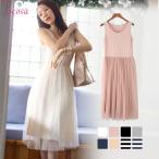ワンピース レディース チュール ノースリーブ チュールワンピース ひざ丈 無地 春 夏 切り替え ルームウェア リゾート ビーチ JOCOSA 8280
