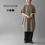 mizuiro ind(ミズイロインド) ロールアップ スリーブワンピース / カットソー 半袖 膝丈 ミドル丈 綿100 コットン チュニック