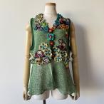アルベロベロ(Alberobello)オレボレブラアップリケ&かぎ針モチーフ付き すかし柄ニットベスト(グリーン)【2026 SPRING COLLECTION】送料無料
