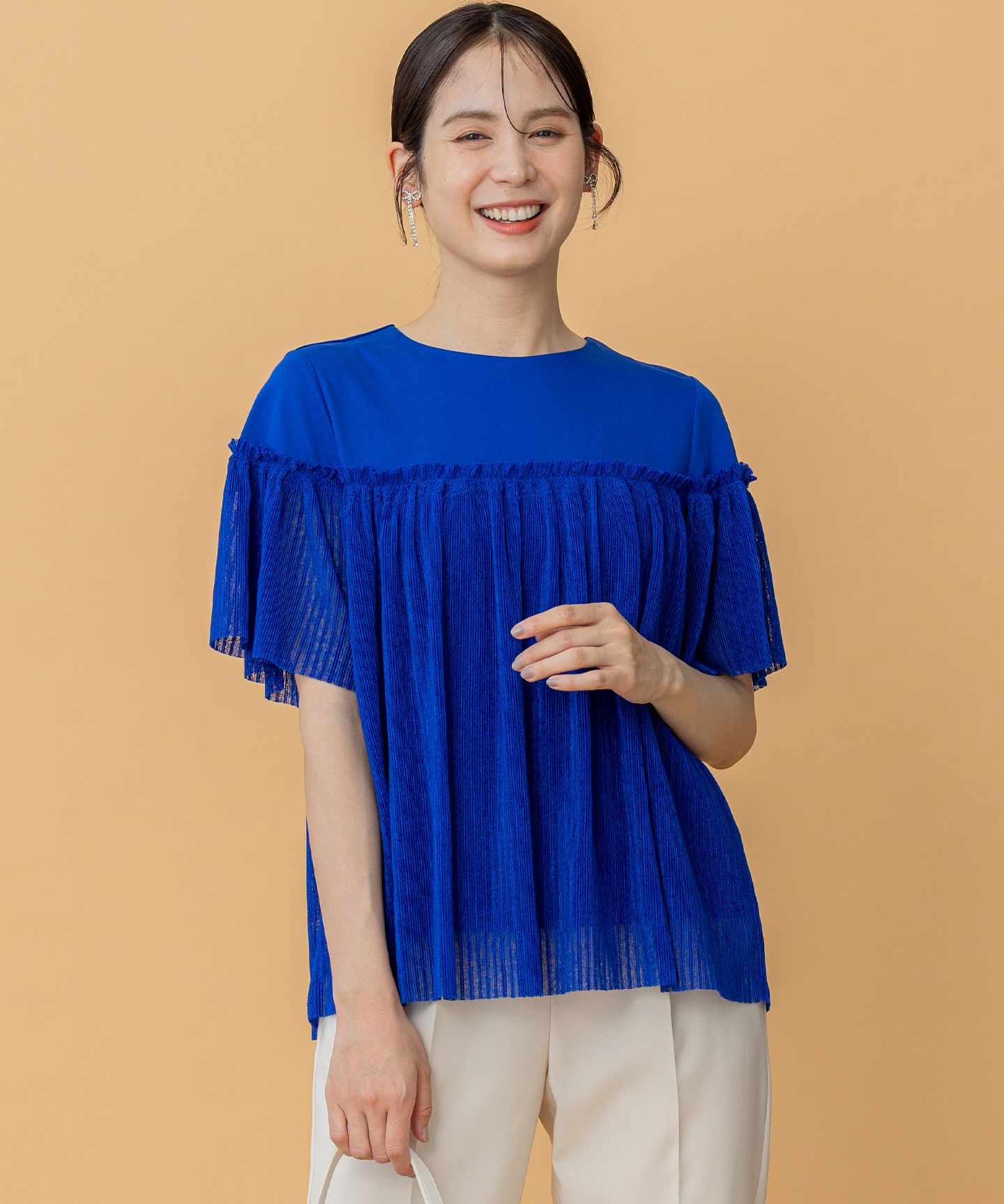 23区(ニジュウサンク)/【汗じみ防止/洗える】ランダムフリルジャージー ドッキング カットソー