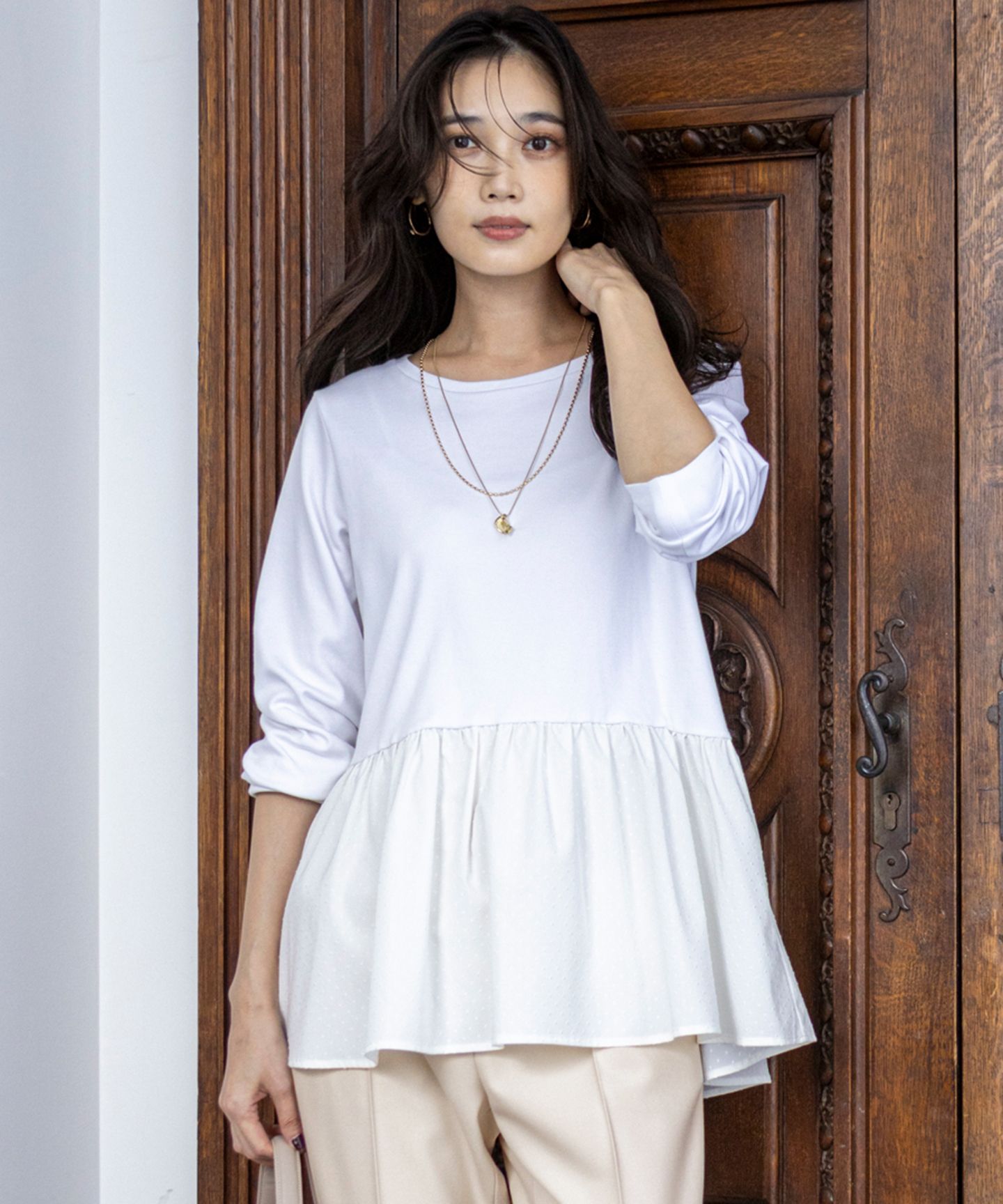 ANY SIS(エニィスィス)/【洗える】スムースコンビペプラム カットソー
