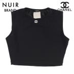 【3日間限定 全品20%OFF 10/26 23:59まで】シャネル CHANEL ちび丈 ノースリーブ クロップド ココマーク カットソー トップス ブラック eit0231P4035 【中古】