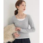 tシャツ 裏起毛レイヤード風リブトップス レディース