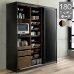 5%OFFクーポン対象●10/14 13:00 〜[開梱設置無料]【大川家具】レンジボード キッチン収納 180cm幅 180 ジータ クローチェ×ウォールナット(メラミン)[イノベーションセレクションズ] 石目調×スモークガラスの大容量収納 国産 日本製