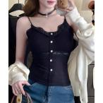 キャミソール フロント ボタン レース ドッキング カップ付き キャミソール