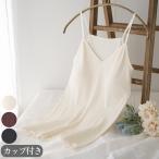 シルク100% テレコ カップ付き キャミソール 日本製 ウォッシャブル加工 レディース オフホワイト ブラウン ブラック M/L