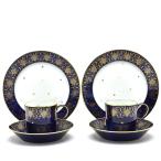 セーブル コーヒーカップ&ソーサー+デザート皿(ペア)6pcリトロン クラウデットブルー 雲模様24K金彩装飾(SUBES 94.41) フランス製 Sevres