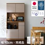 食器棚 キッチンボード 幅90cm 国産 完成品 大川家具 開梱設置無料 モイス加工 防汚加工 鏡面ホワイト セラミック調グレー オーク グレージュ 大容量 代引不可