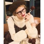 ニット セーター 「至福のカヌレニット」レイヤード風ハイネックボリュームスリーブ リブニットプルオーバー レディース