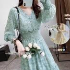 ウエストシャーリング花柄ロングワンピース