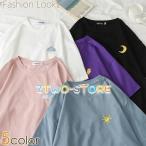 Tシャツ ゆるTシャツ 天気マーク 刺繍 ゆったり 五分袖 カラバリ レディース トップス