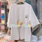 Tシャツ ゆるTシャツ 無地 五分袖 レディースTシャツ シンプル ゆったり スマイルマーク レディース トップス