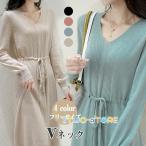 ニットワンピース レディース ロングワンピース ニット Vネック 長袖 膝丈 ゆったり ロングセーター トップス 冬 春 秋 30代 40代 50代