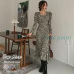 ワンピース パフスリーブ スリット レディース フレア ロング 長袖 パフ袖 タイト マキシ 小花柄 マーメイド カジュアル 大人 きれいめ 春