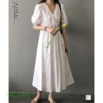 レディース ワンピース プリーツワンピース 秋ワンピ ロング ワンピース ウエストベルト付き フレンチスリーブ 切り替え 体型カバー オシャレ クラシカル