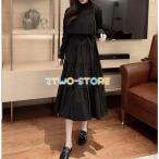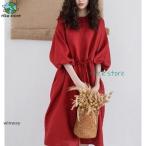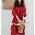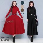 ロングワンピース ワンピ レディース ワンピース 無地 長袖 ハイネック 冬 秋 ロング丈 ウエストマーク ベルト カジュアル パーティー 祭り