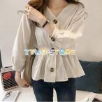 3色有り ブラウス レディース 長袖 Vネック シャツ トップス ボタン ウエストマーク 無地 通勤 上品 きれいめ 大きいサイズ 体型カバー M-4XL