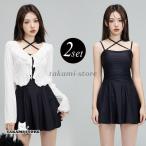 夏 水着 体型カバー ワンピース オールインワン ボレロ 2点セット レディース 2way 長袖 トップス フリル フロントクロス