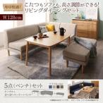 こたつ リビングダイニングセット 5点セット テーブル+2人掛けソファ1脚+1人掛けソファ1脚+コーナーソファ1脚+ベンチ1脚 W120 高さ調節 おしゃれ