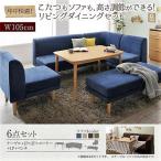 こたつ リビングダイニングセット 6点セット テーブル+2人掛けソファ1脚+1人掛けソファ2脚+コーナーソファ1脚+ベンチ1脚 W105 高さ調節 おしゃれ