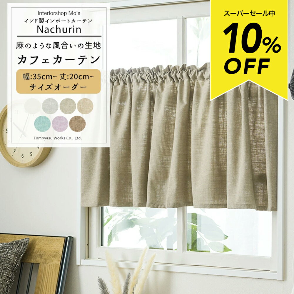 [スーパーセール10%OFF!]カフェカーテン サイズオーダー 幅35〜290cm 丈21〜150cm 【CH504】 ナチュリン [1枚] オーダーカーテン リネン調 無地 コットン ナチュラル シンプル ホワイト 北欧 グレー ベージュ ブラウン OKC5