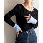 tシャツ 長袖 配色バイカラー カフスシャツ レイヤード風トップス レディース