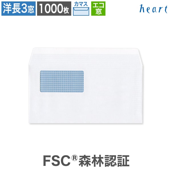 【スーパーセール 30%OFF】洋長3封筒 窓付 エコ窓1号 ホワイト ケント CoC 100g カマス貼 1000枚 裏地紋入 FSC森林認証 FSC認証 白封筒 A4 3つ折 洋長3 洋形長3号 洋0 白 無地 グリーン購入法適合