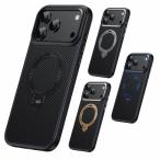 iPhone17 ケース 17 Air/17 Pro/17 Pro Max カメラ保護あり 耐衝撃 Qi充電 ワイヤレス充電 対応 カバー カーボン調 一体型リング付き スタンド機能 お洒落