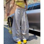 パンツ カラビナチャーム付きチェックワイドパンツ レディース