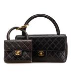 シャネル CHANEL ハンドバッグ 親子バッグ ラムスキン 1番台 ラムスキン ブラック