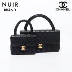 シャネル トップハンドル 親子バッグ ハンドバッグ ブラック ラムスキン レディース CHANEL 【中古】