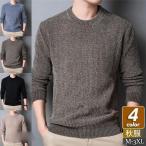 セーター メンズ ニット 長袖 クルーネック 無地 トップス カットソー カジュアル 秋冬 厚手 シンプル ゆったり ルームウエア おしゃれ