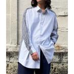 シャツ 無地×ストライプ アウトサイド切り替え オーバーサイズ シャツ(ユニセックス)Outsider Shirt (Plain) (stripes)