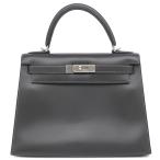 エルメス 2WAYバッグ ケリー28 外縫い ボックスカーフ グレー 灰色