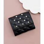 財布 三つ折り財布 ミニ財布 ボックスコイン キルティング パール ビジュー ナッツ レディース
