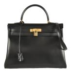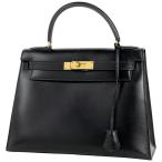 HERMES エルメス ハンドバッグ ケリー32 ブラック/ゴールド金具 ボックスカーフ 外縫い