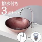 お得セット 【送料無料】 洗面ボウル 排水トラップ 排水金具 3点セット おしゃれ mizunohana B147 メタリックガラス 強化ガラス お洒落 インテリア 紫