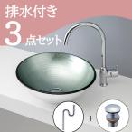お得セット 【送料無料】 洗面ボウル 排水トラップ 排水金具 3点セット おしゃれ mizunohana B156 メタリックガラス 強化ガラス お洒落 インテリア 高級感