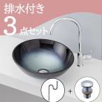 お得セット 【送料無料】 洗面ボウル 排水トラップ 排水金具 3点セット おしゃれ mizunohana B150 メタリックガラス 強化ガラス お洒落 インテリア ブラック