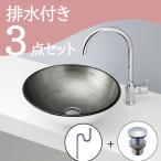 お得セット 【送料無料】 洗面ボウル 排水トラップ 排水金具 3点セット おしゃれ mizunohana B157 メタリック ガラス 強化ガラス 洗面器