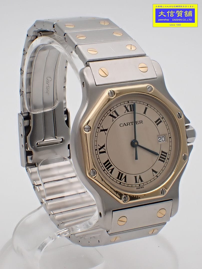 CARTIER カルティエ サントス オクタゴンLM コンビ SSxK18YG ボーイズ ウォッチ クォーツ アイボリー 中古B+【中古】【大信質舗】【質屋出店】管理番号:B-2344