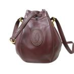 カルティエ ショルダーバッグ マストライン レザー - 巾着 ゴールド金具 ボルドー ハンドバッグ【本物保証】