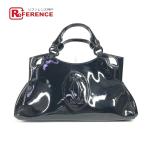 カルティエ Cartier マルチェロ ハンドバッグ エナメル ロゴ パテントレザー 黒 ブラック レディース